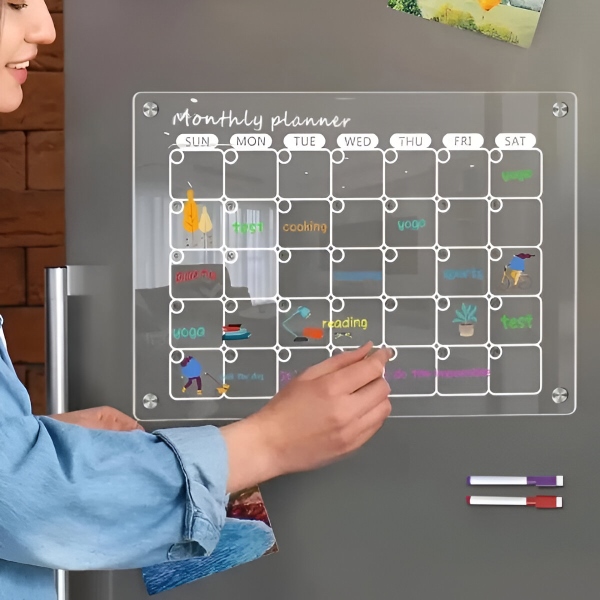 Akrylový set kalendářů na lednici – Měsíční + týdenní plánovač (každý 40 x 30 cm), 4 magnety, stíratelný za sucha, fixy součástí balení | REUSABLEPLAN