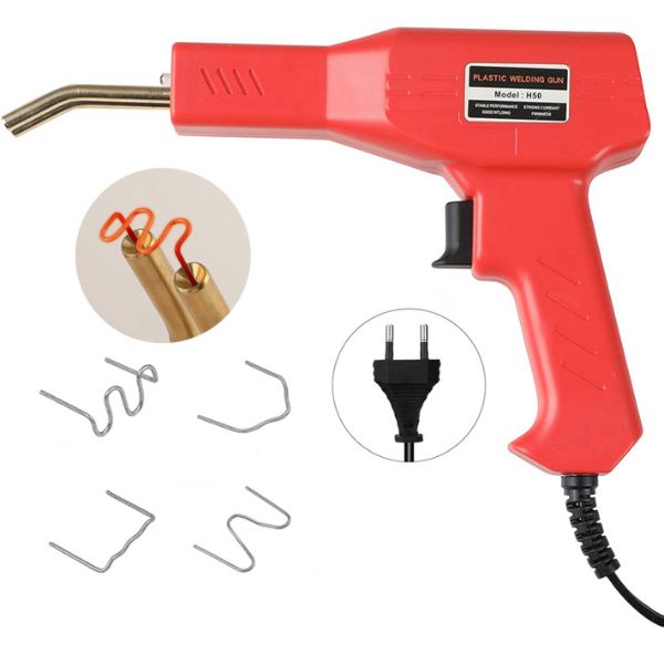 - Balení obsahuje jedno svařovací zařízení, jednu sadu kleští, jeden nůž a 200 sponek různých velikostí.