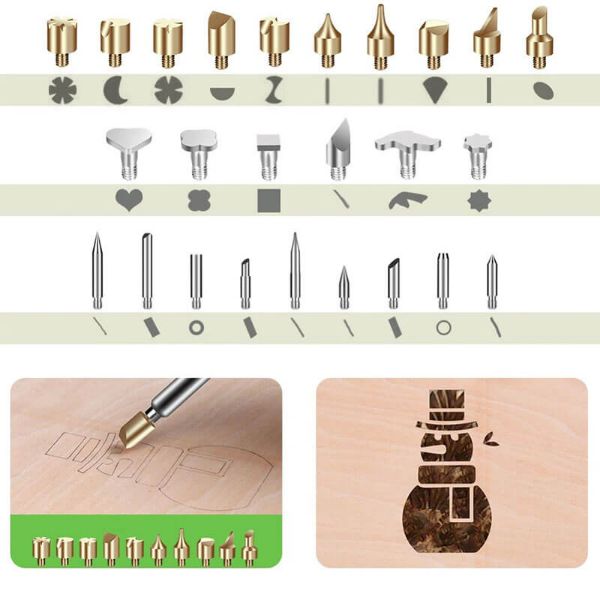 Tato víceúčelová sada s různými pájecími nástavci a nástavci na vypalování do dřeva vám umožní vytvořit cokoli, co si jen dokážete představit. Díky tomu je ideální pro práci s materiály, jako je dřevo, kůže, vosk nebo korek. Univerzální páječku můžete použít i pro další pájecí práce, kde potřebujete přesnost.