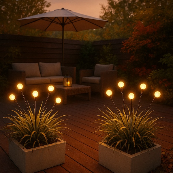 Protože fungují na solární energii, nepotřebujete kabely, baterie ani elektrické zásuvky. Stačí je umístit kamkoliv chcete a užívat si atmosféru.