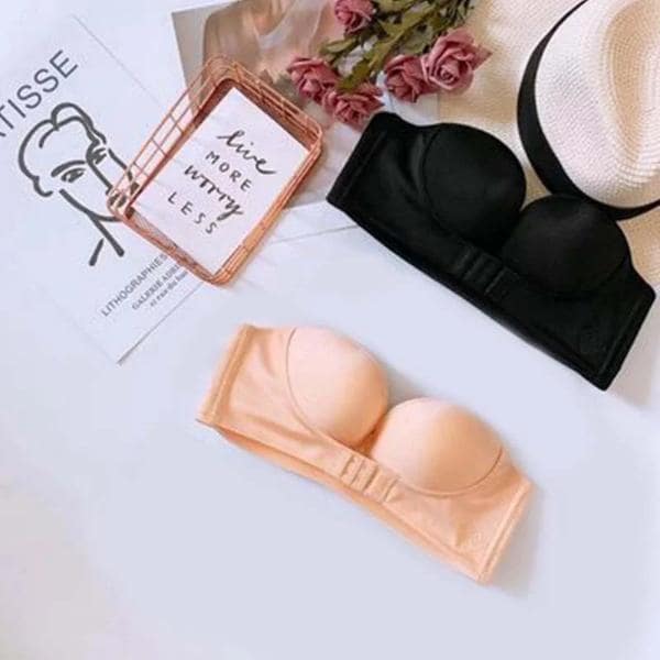 Zcela nenápadná podprsenka vhodná k nošení pod jakékoliv šaty nebo halenku! Balení obsahuje 1x černou a 1x béžovou podprsenku bez ramínek.