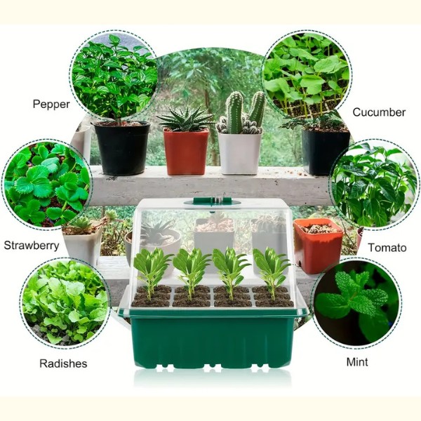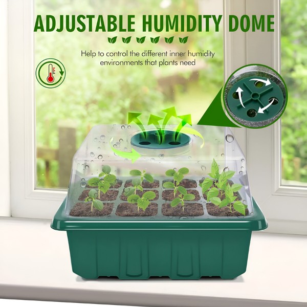 Každá miska má 12 otvorů a víko s ventilačním otvorem. Nyní můžete kontrolovat úroveň vlhkosti a zajistit nejlepší prostředí pro vaše sazenice. Pěstujte zdravé, dobře provzdušněné kořeny pro silnější rostliny.