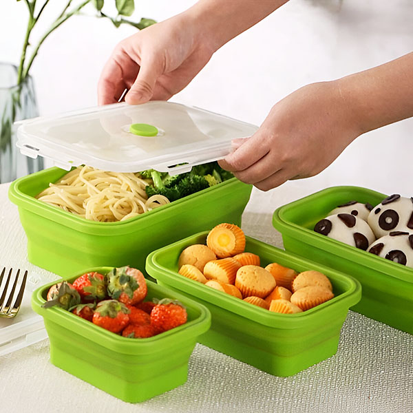 Tyto nádoby jsou vyrobeny z vysoce kvalitního silikonu bez obsahu BPA a zajišťují, že vaše potraviny zůstanou čerstvé a bez škodlivých chemikálií.